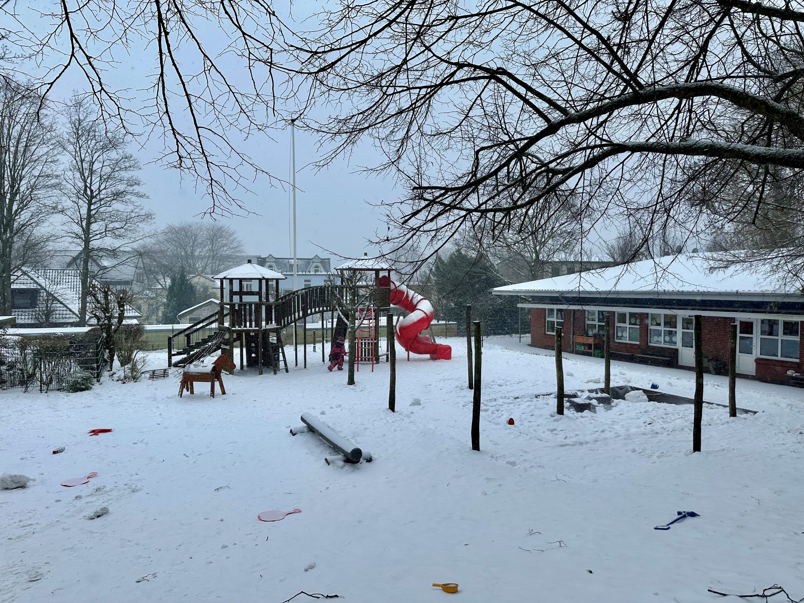 Der ligger et fint lag sne på legepladsen, første gang vi besøger Skt. Hans Børnehave, for at snakke med børnehavens leder, Annika Starck. Vi er taget på besøg for at høre nærmere om børnehavens kommende byggeprojekt, nemlig et nyt klatrestativ til børnehavens legeplads. I foråret 2025 søgte Skt. Hans Børnehave nemlig tilskud til et nyt klatrestativ, da det gamle synger på sidste vers. Annika Starck fortæller, at klatrestativet er et helt væsentligt element for børnehaven, idet børnehaven ikke råder over store udearealer og er beliggende midt i Flensborg by. Selvom børnehaven gør brug af nærmiljøets legepladser og naturområder, er det dog vigtigt, at institutionens legeplads kan tilbyde børnene muligheder for leg på institutionens egen matrikel, og skaber grobrund for både fantasi og kreativitet.